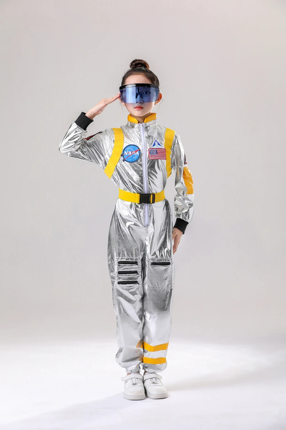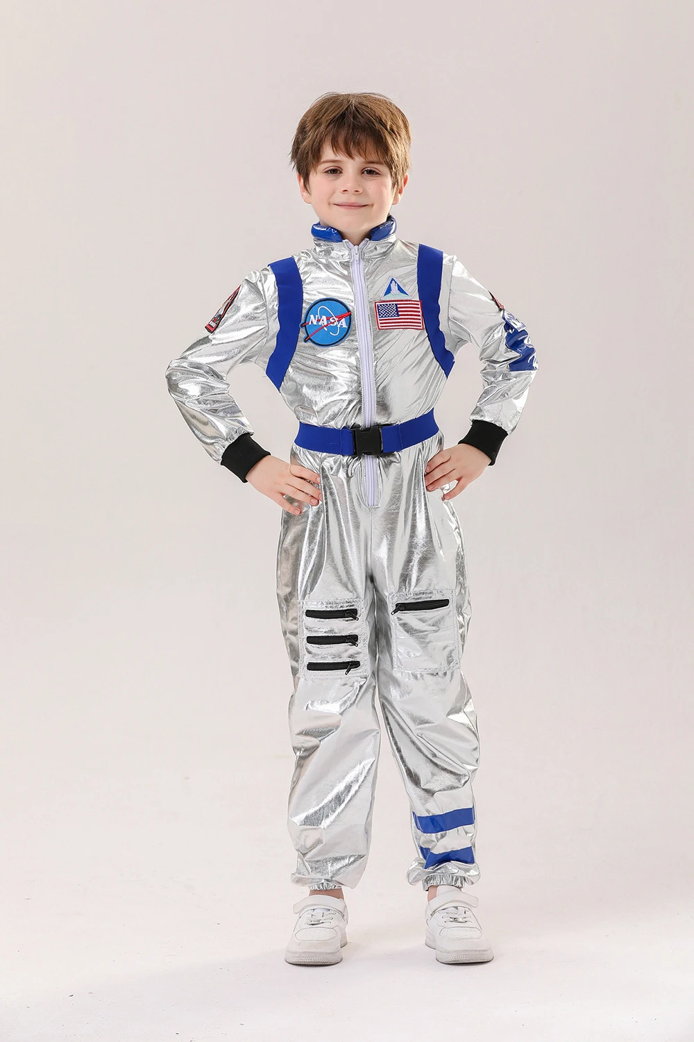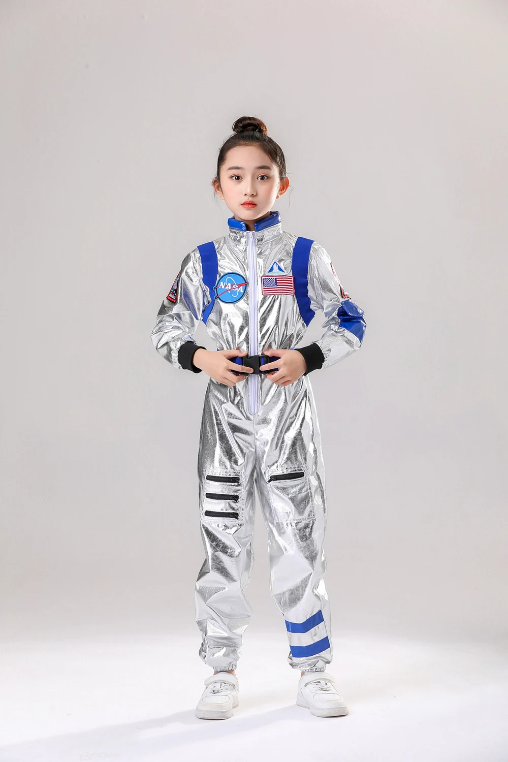 Astronaut Costume Kids Astronaut Silver Jumpsuit Space Themed Party Dress Up Boys Girls Spaceman Cosplay Children Space Suit